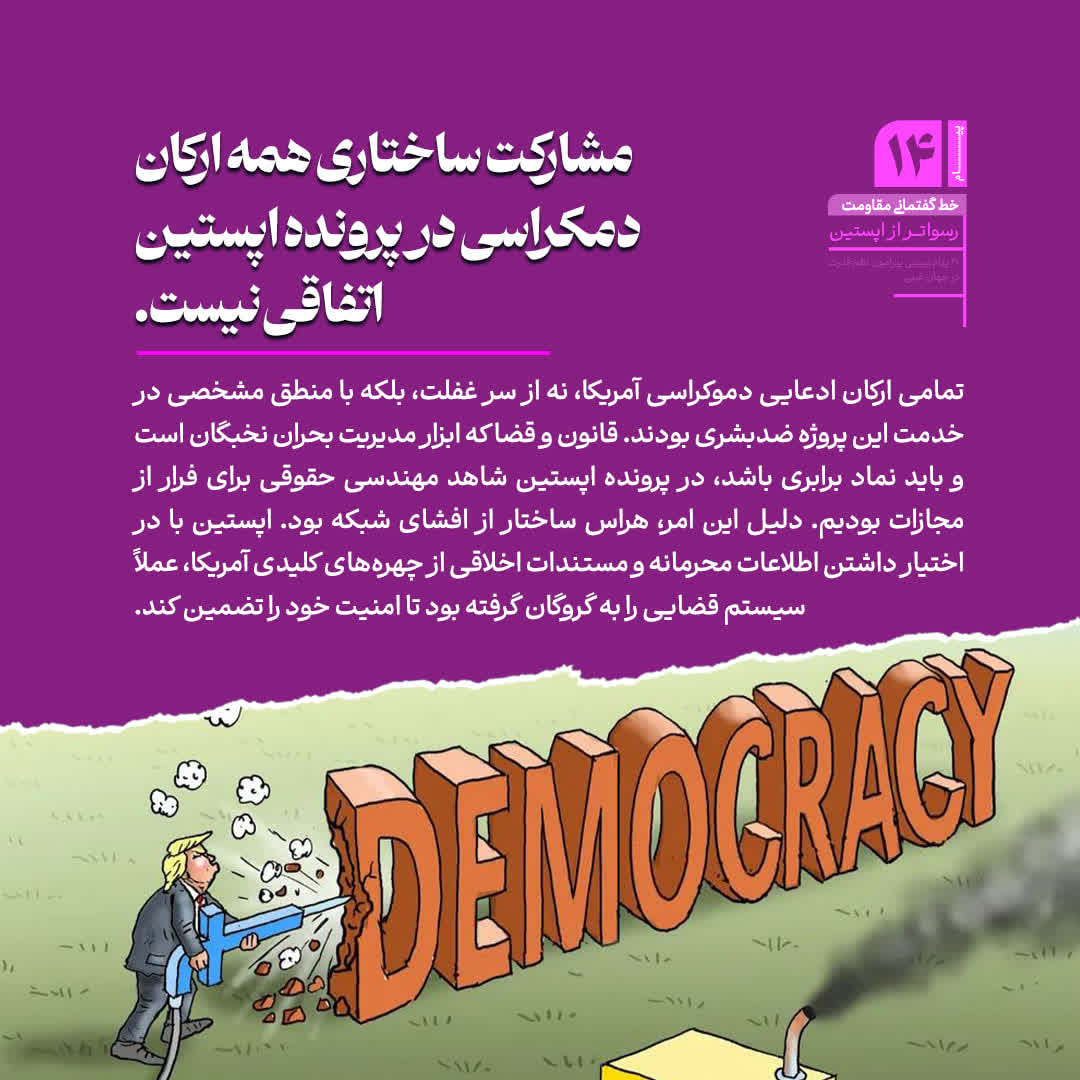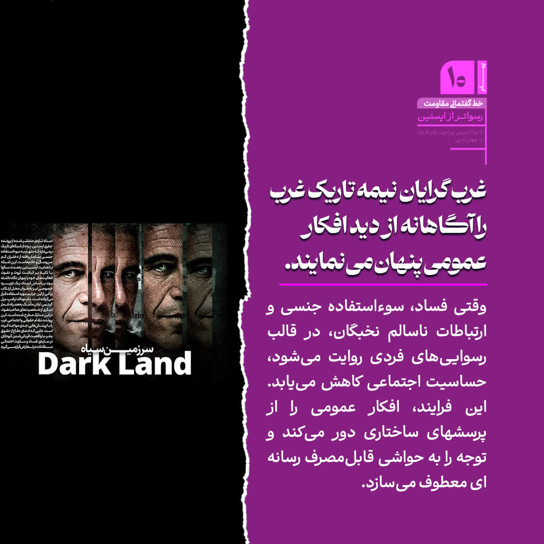 ترسناکتر از جرایم جنسی این پرونده، فروریختن افسانهی حاکمیت قانون و رسانههای آزاد در غرب است. دستگاه قضایی آمریکا در این ساختار، به جای آنکه شمشیر عدالت بر گردن مجرمان باشد، نقش سپر حفاظتی نخبگان فاسد را ایفا کرد. امضای توافقنامه مصونیت قضایی در سال ۲۰۰۸ و سپس مرگ مهندسیشدهی متهم ردیف اول در امنیتیترین زندان فدرال، ثابت کرد که در دموکراسیهای غربی، قانون تنها برای کنترل شهروندان عادی است و در برابر شبکههای ثروت و قدرت، کاملاً فلج و منفعل عمل میکند. رسانههای جریان اصلی نیز که دههها ادعای رکن چهارم دموکراسی را داشتند، با سانسور هدفمند و سکوت سازمانی، شریک جرم این ساختار شدند تا چهرهی بزککردهی غرب مخدوش نشود.