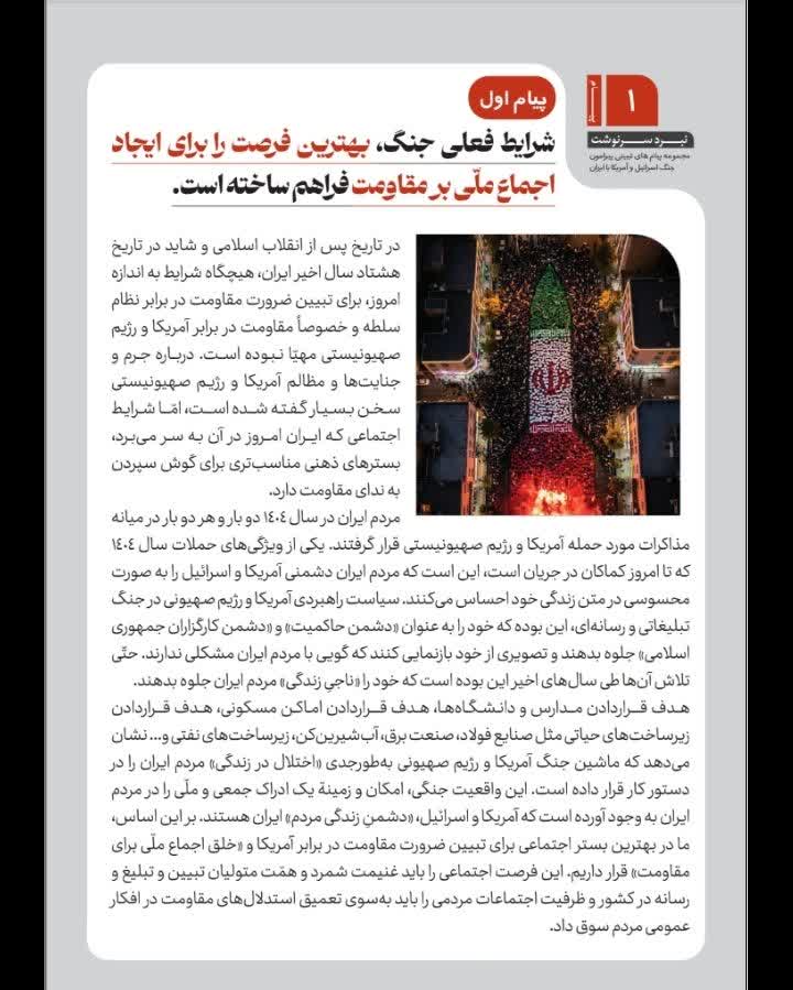 شرایط فعلی جنگ، بهترین فرصت را برای ایجاد اجماع ملّی بر مقاومت فراهم ساخته است.