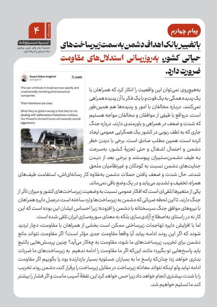 با تغییر بانک اهداف دشمن به سمت زیرساختهای حیاتی کشور، بهروزرسانی استدلالهای مقاومت ضرورت دارد.