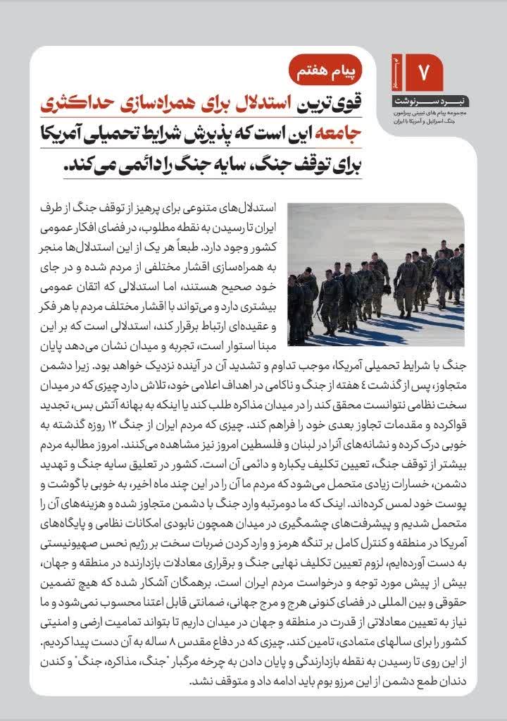 در برابر مواضع شبههافکن نسبت به تداوم جنگ، باید از استدلالهای قانعکننده بهره برد.