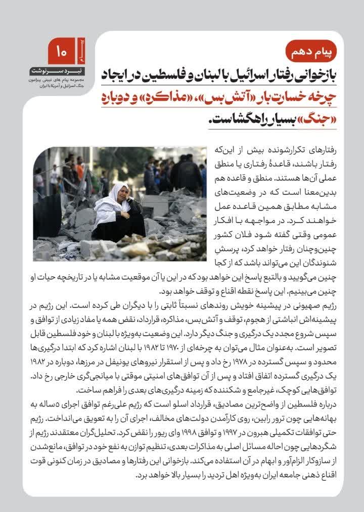 بازخوانی رفتار اسرائیل با لبنان و فلسطین در ایجاد چرخه خسارتبار «آتشبس»، «مذاکره» و دوباره «جنگ» بسیار راهگشاست.