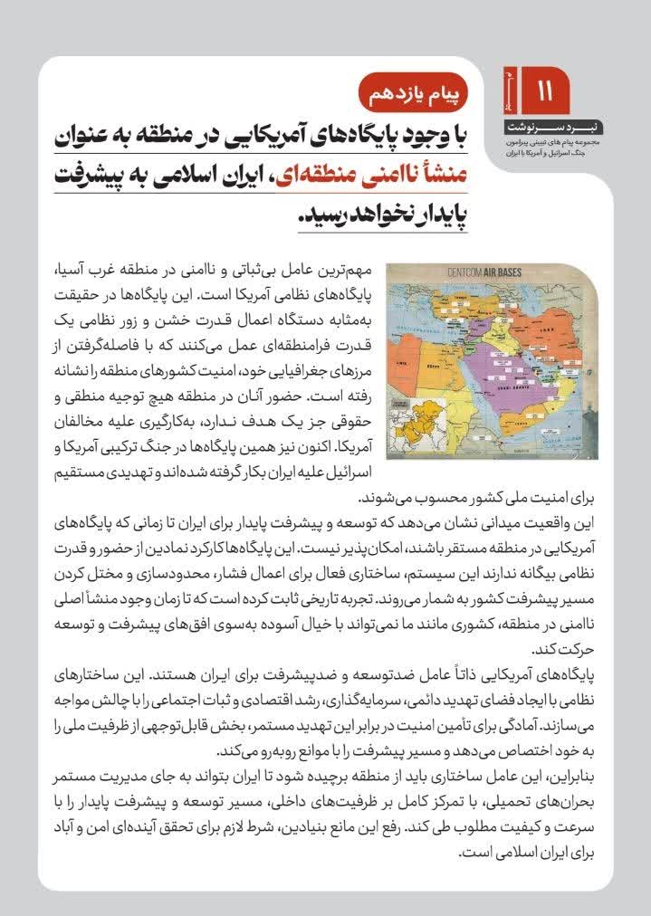 با وجود پایگاههای آمریکایی در منطقه به عنوان منشأ ناامنی منطقهای، ایران اسلامی به پیشرفت پایدار نخواهد رسید.