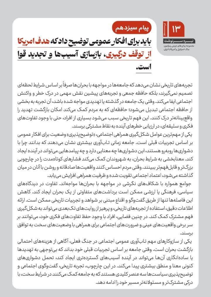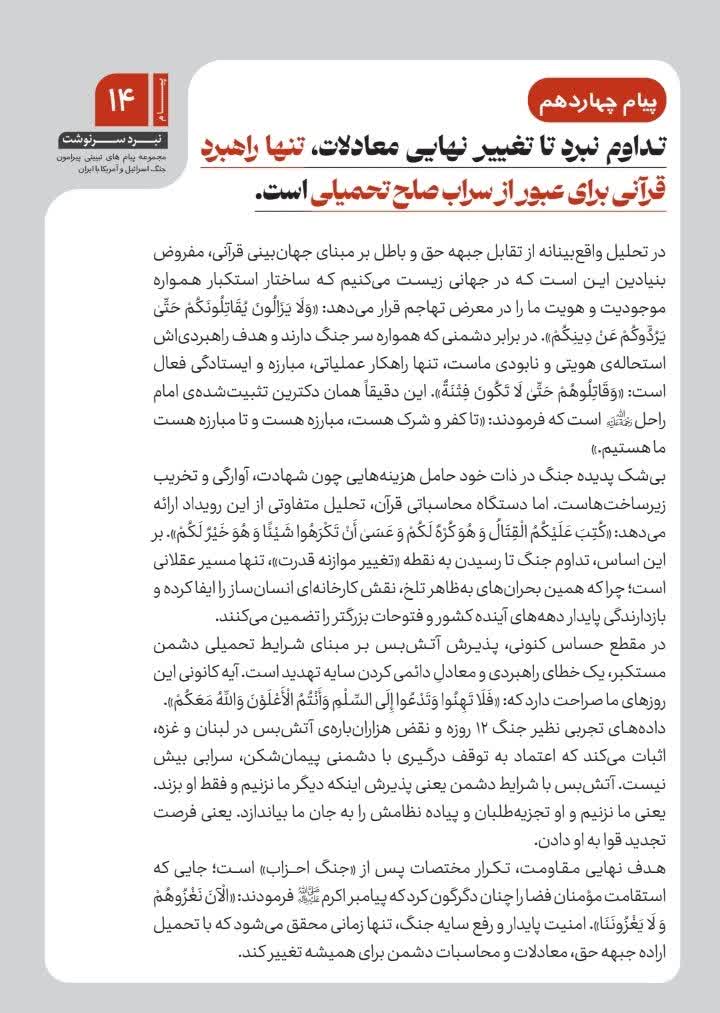۱۴ پیام تبیینی پیرامون منطق تداوم دفاع
