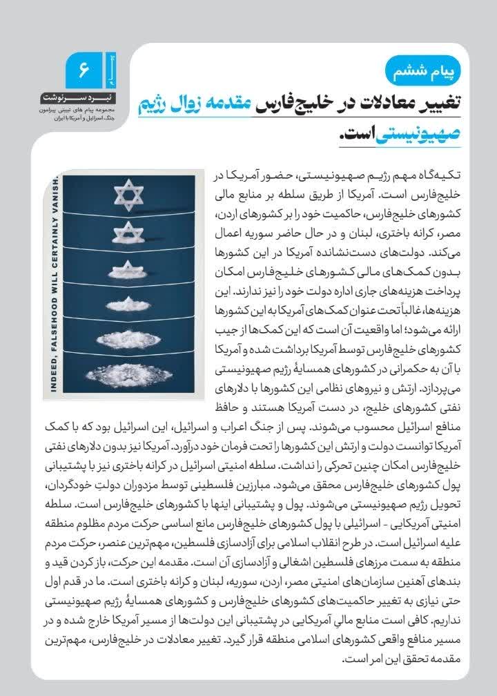 جنگ منطقهای با جنگ مردم منطقه علیه آمریکا و اسرائیل تثبیت میشود.