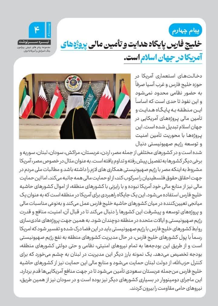 خلیج فارس پایگاه هدایت و تأمین مالی پروژههای آمریکا در جهان اسلام است.
