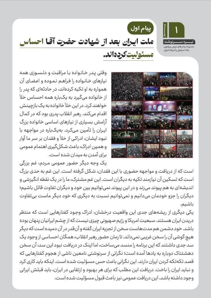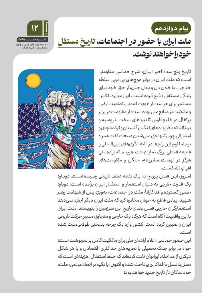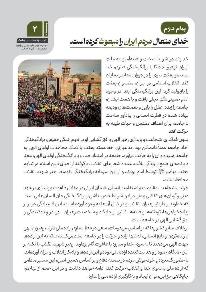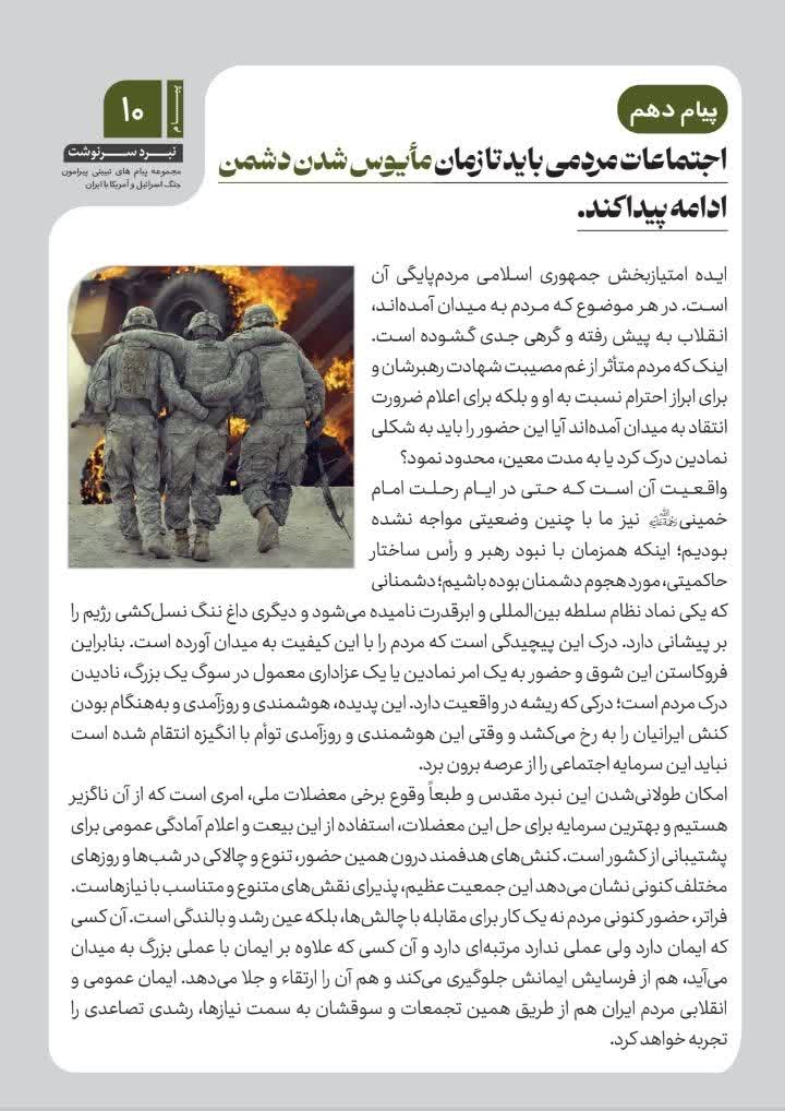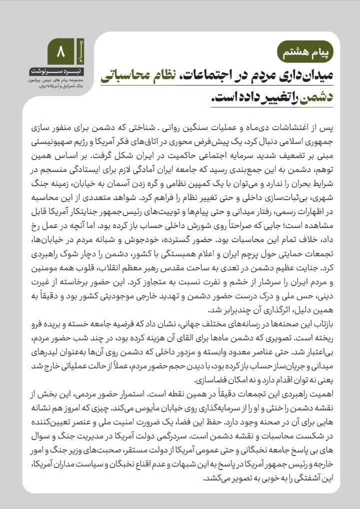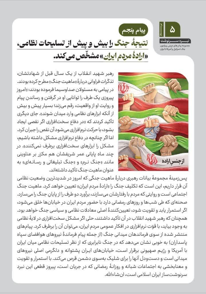 نتیجه جنگ را بیش و پیش از تسلیحات نظامی، «اراده مردم ایران» مشخّص میکند.